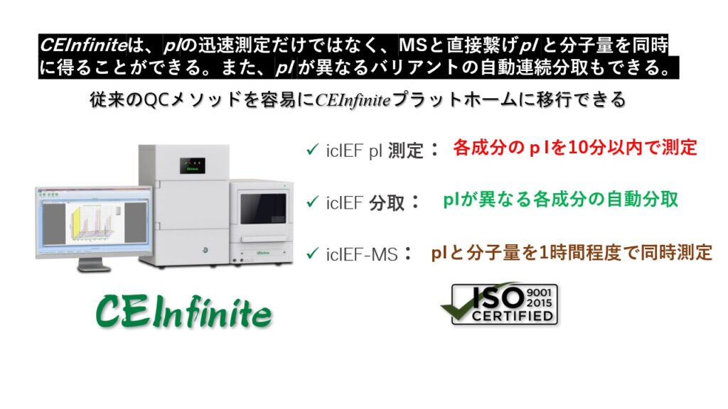 一方、CEInfiteは、pI の迅速測定以外に、