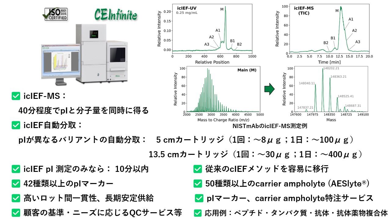 ① MSと直接接続できる!② 各 pI 成分の自動分取もできる!③ Carrier ampholytes等の試薬を安定供給できるicIEF 装置―CEInfiniteがとうとう日本に登場!
