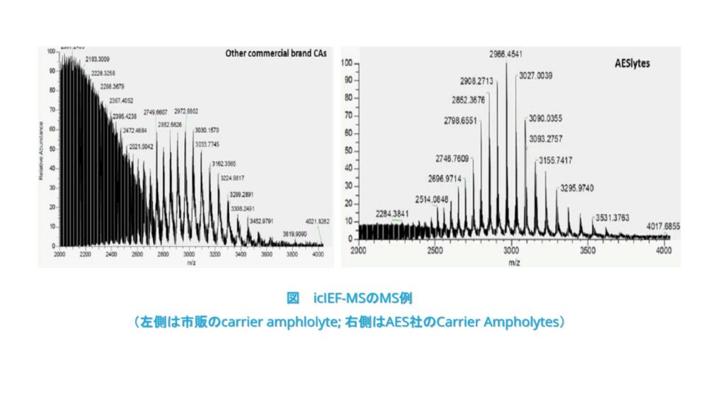 ● 従来市販のcarrier ampholyteより、低いMSバックグランド