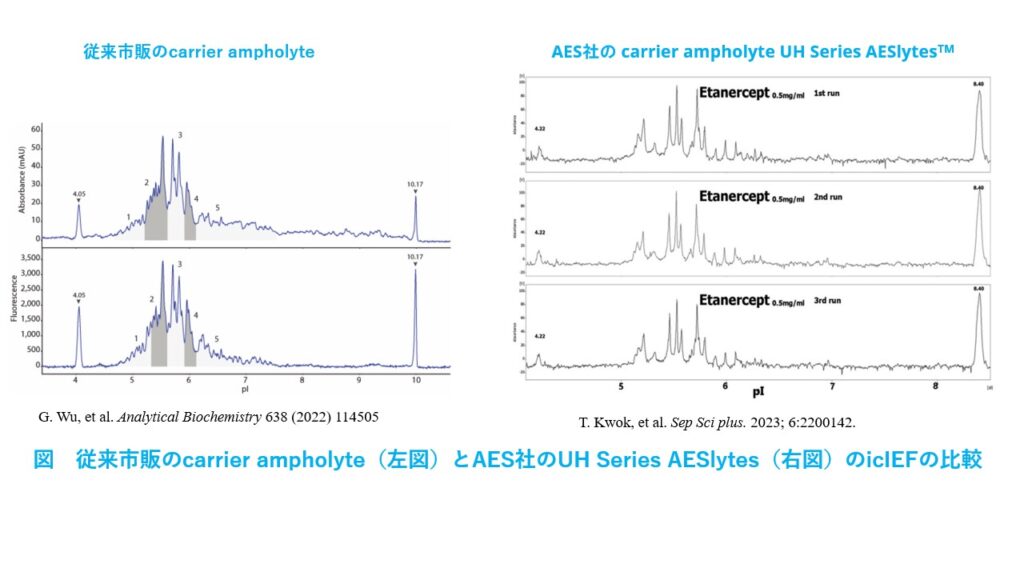 ③ 42種のpIマーカー、50種のcarrier ampholyte (「AESlyte®」): 独自開発